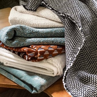 The Casamance Anthology textile collection features varieties of designs in a color palette rich in bright, neutral and soft tones. Some of these pieces feature embedded geometric figures. Others feature polka dots or curvilinear shapes. The combination of these designs gives an eclectic style to this selection of fabrics. These same illustrations blend warm or cool hues with subdued shades, creating a subtle play of contrast in the patterns. These linen, cotton and wool blends offer a pleasant texture and resistance to heavy use.
