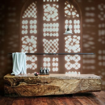 Specially adapted to damp rooms, the Aquabout Wet System collection from Wall&Deco offers woven fiberglass wall coverings. This selection of eclectic decors offers a backing with fire and water resistance. These same models are treated against yellowing and humidity. Among these works, some feature geometric figures, friezes, polka dots and abstract shapes. These elements adopt a soft, neutral and bright color palette. A few of the pastel shades used add a subtle touch of freshness to interiors. This entire series offers a succession of collaborations with Italian designers, artists and architects.