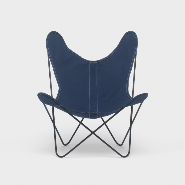 The AA Butterfly Cotton armchair is distinguished by its stretched canvas with flexible curves, suspended on a tubular structure with crossed lines. This iconic seat edited by Aand combines sobriety and comfort in a modernist spirit. The natural cotton used for the seat creates a matte, breathable and textured feel. Each element fades to better reveal the subtle balance between tension and lightness.