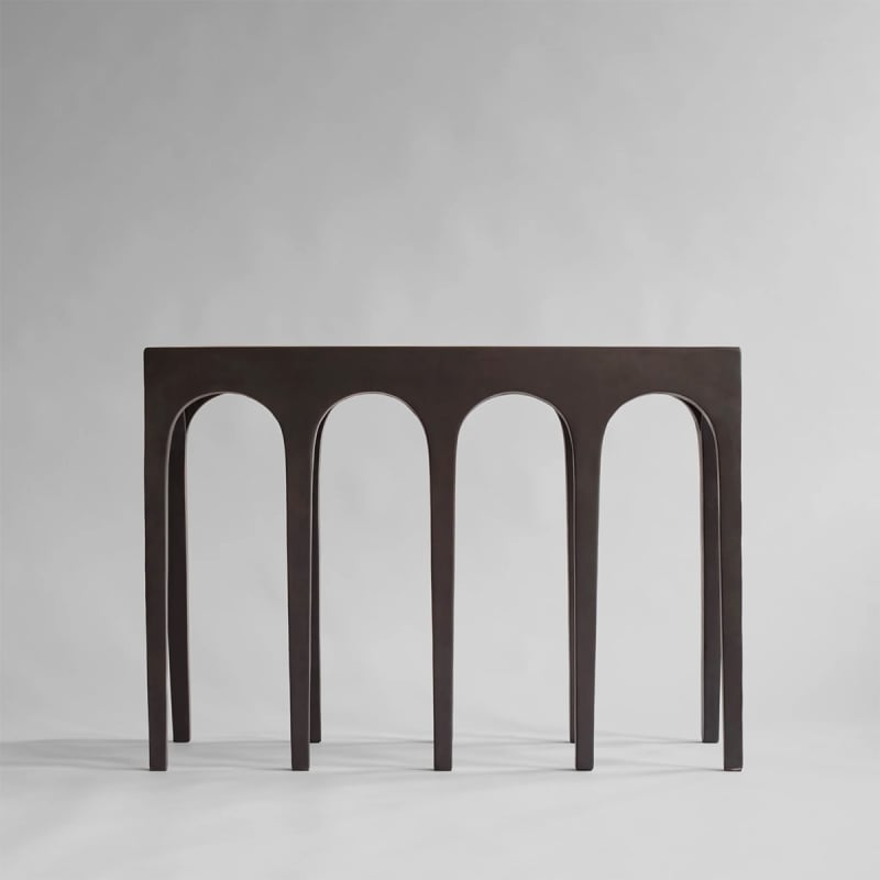 With its majestic silhouette, the Bow Big console imposes its presence with a series of regular and slender arches. This monolithic piece presents a sober and rhythmic sculptural motif that evokes classic porticoes. Designed by 101 Copenhagen, it is the result of a concrete fiber molding. The whole expresses a rigor that is both formal and refined.