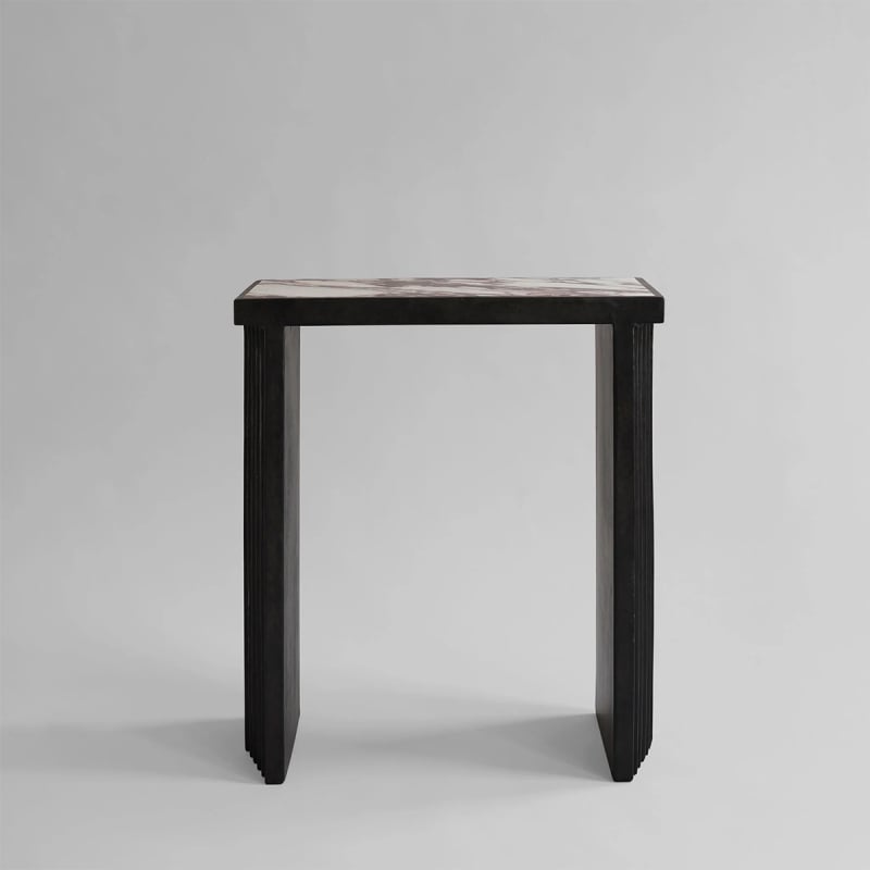 The Arc console features an architectural look, inspired by a classic style. Its sculpted concrete fiber base evokes the power of a monolithic volume, with clean and rhythmic lines. The Calacatta marble top reveals a natural veining enhanced by hand-polishing. Signed 101 Copenhagen, it combines a sculptural presence with the finesse of the materials.