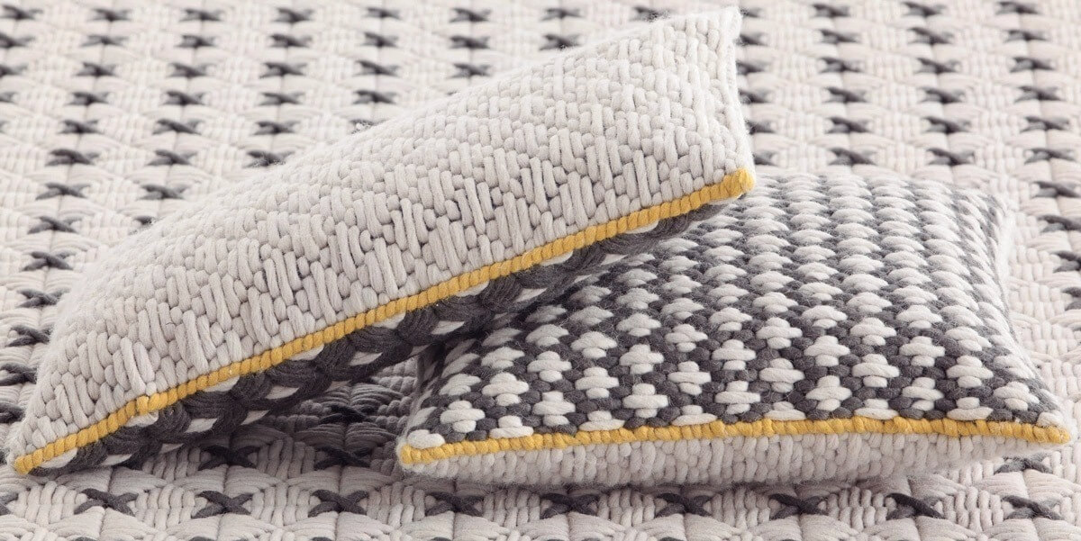Le coussin Silaï, imaginé par Charlotte Lancelot, utilise la broderie comme technique de fabrication. L'art hérité du passé est réutilisé pour créer des coussins hautement contemporains qui habilleront tous types d'espaces. L'image présente le recto et le verso du coussin.
