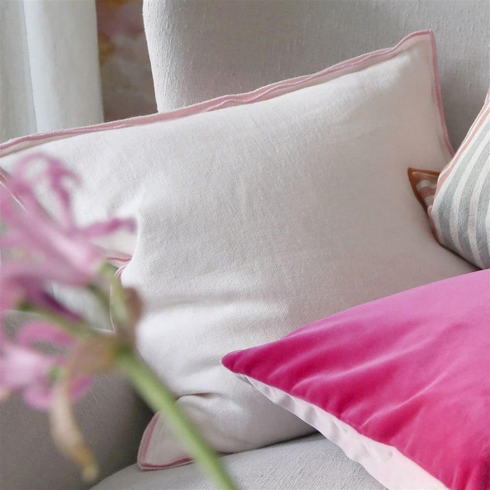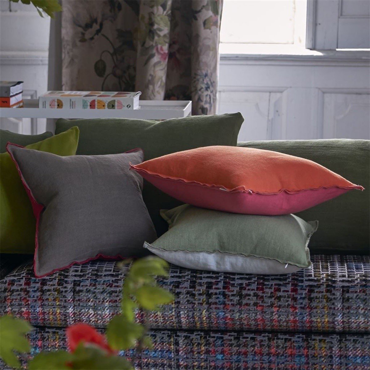 Brera Lino by Designers Guild is a contemporary cushion made of pure brera linen. It is two-tone and has a double stitched finish. Completed on the back by a point of overlock, it is a modern object that fits perfectly in all styles of decorations.