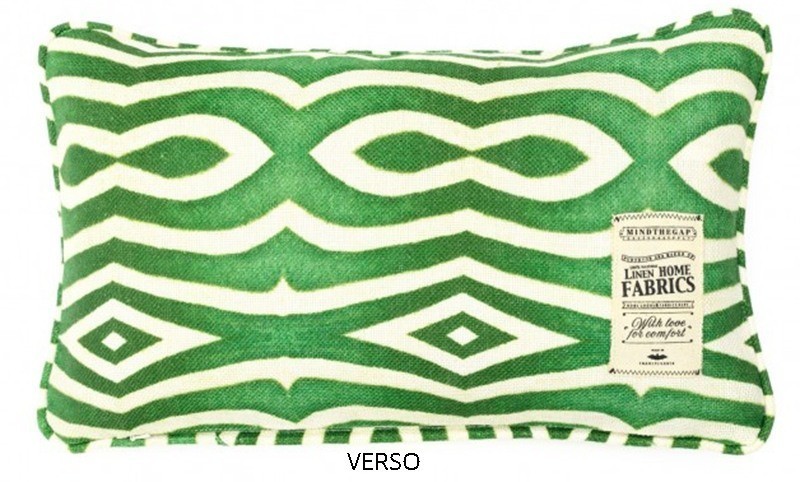 Similar to ethnic patterns, the Riverside cushion design features rhombuses and curvilinear designs entwined in a palette of vibrant, two-tone hues. The accessory sewn in pumice-washed linen is padded with duck feathers to maintain its pleasing texture and shape.