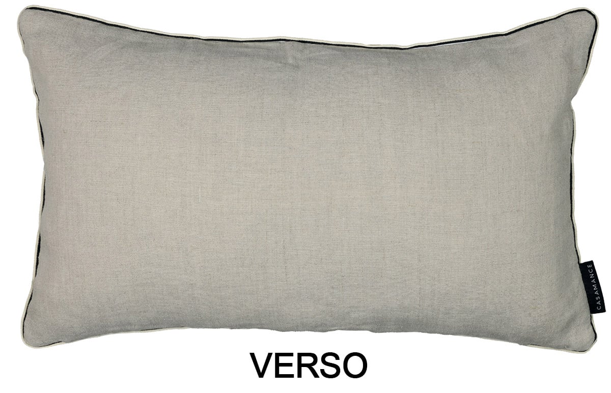 The Abondance cushion brightens up any space with the vibrant palette of its removable cover. The front, in jacquard velvet, features abstract geometric figures. The circles overlap a tile pattern, all punctuated by a play of colours and textures. Piping in the same shade as the plain linen back enhances the border. The set is signed 'Casamance', written in white on a black label.