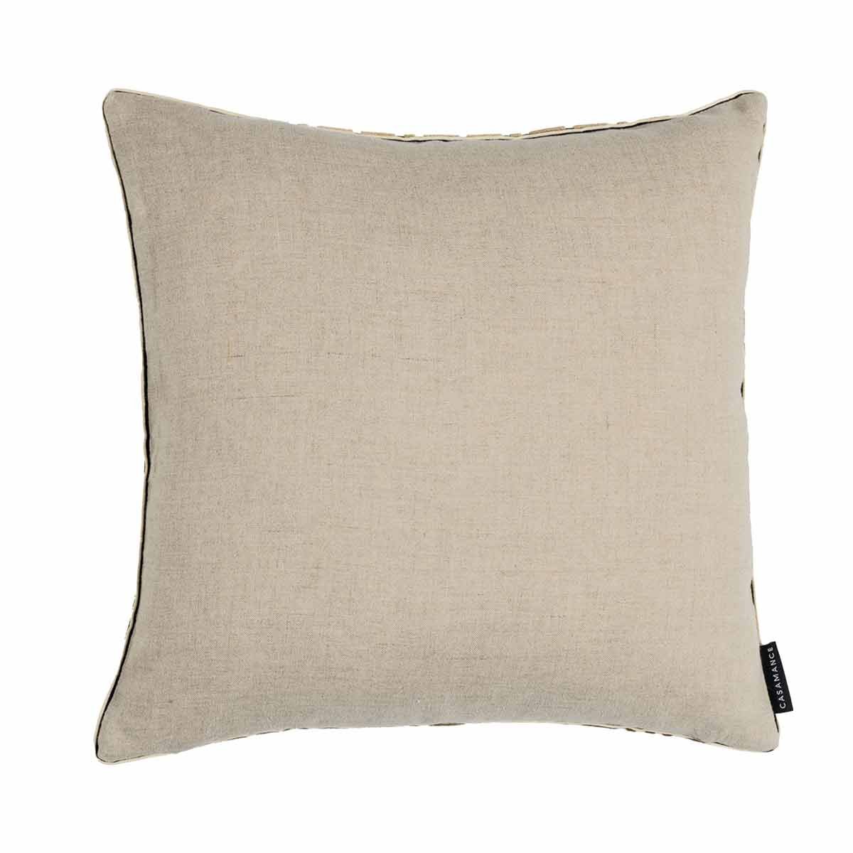 On its surface, the Analogie cushion presents a geometric composition, structured by embossed rectangles. The architecturally inspired design is distinguished by a velvety texture in contrast to a more finely woven background. On the back, the plain pattern balances the whole with sobriety and minimalism. Discreet piping highlights the contours and affirms the neat finish of this Casamance creation.
