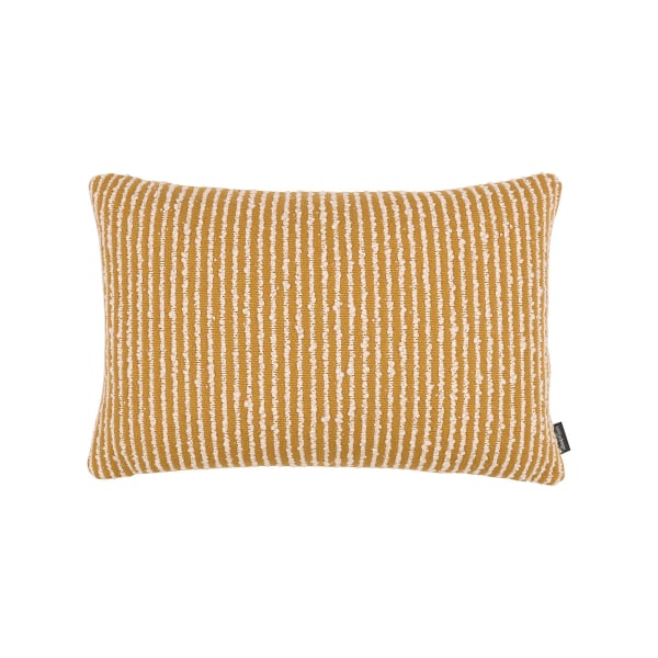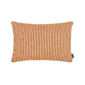 Feel is a rectangular cushion structured by a pattern of irregular stripes, where texture becomes language. Looped wool lines rise with relief on a recycled cotton background and draw a dense and lively weft. The graphic composition dialogues with the raw material and opens up a tactile experience. Kirkby Design asserts a contemporary aesthetic.