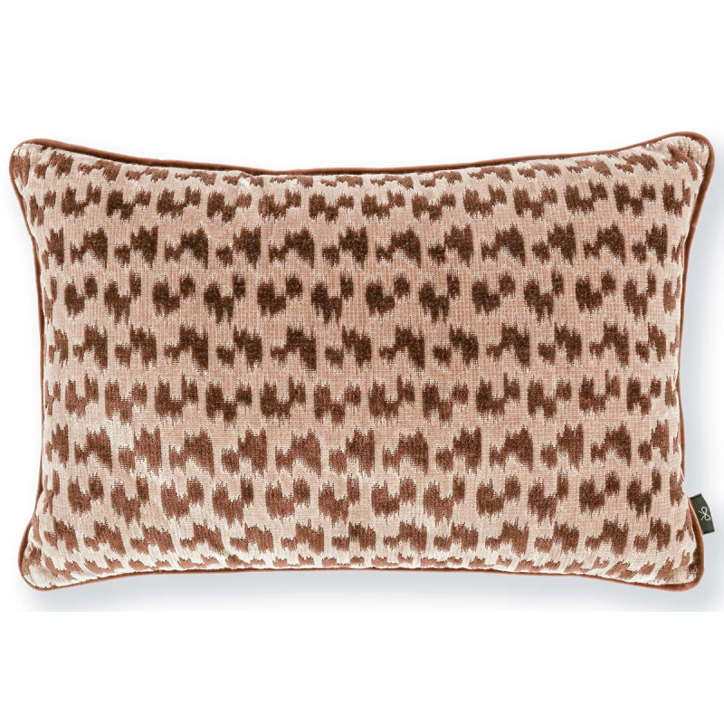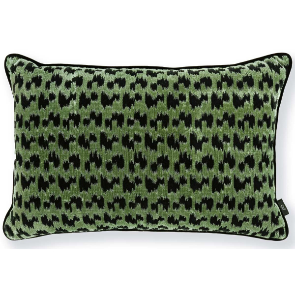 An abstract ikat pattern unfolds on the rectangular Koba cushion designed by Black Edition. A series of vibrant shapes evokes an ancestral weave reinterpreted. Made of jacquard weaving, the illustration gains relief on a cut and uncut pinned velvet. The piped finish frames the whole with precision and underlines an authentic textile richness