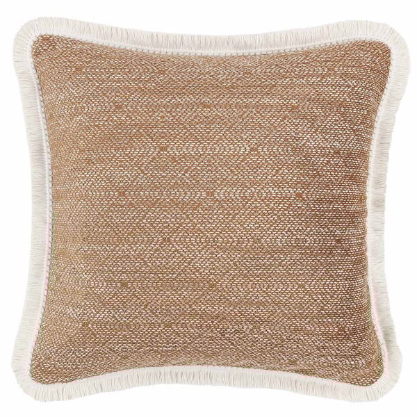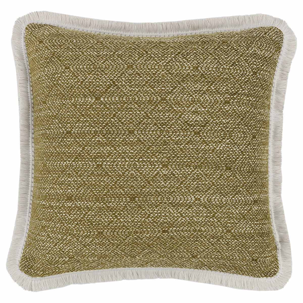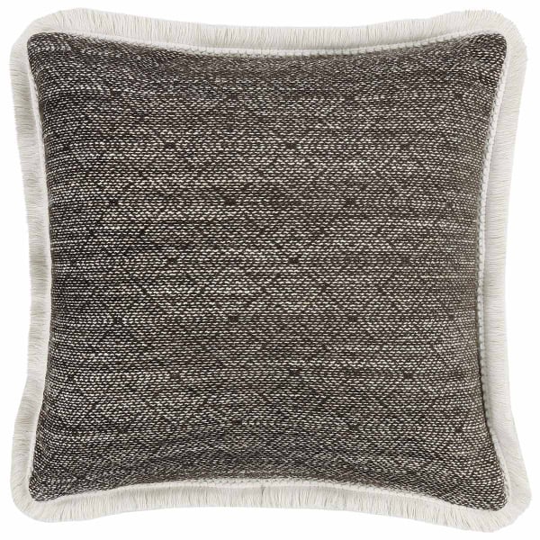 Akalu is a cushion with a subtle geometric pattern, inspired by a checkerboard with finely structured lines. The jacquard weave creates a refined texture, marked by a play of discreet reliefs. A fringe delicately frames the outline. Villa Nova favors the rigor of the design and the richness of the materials used.