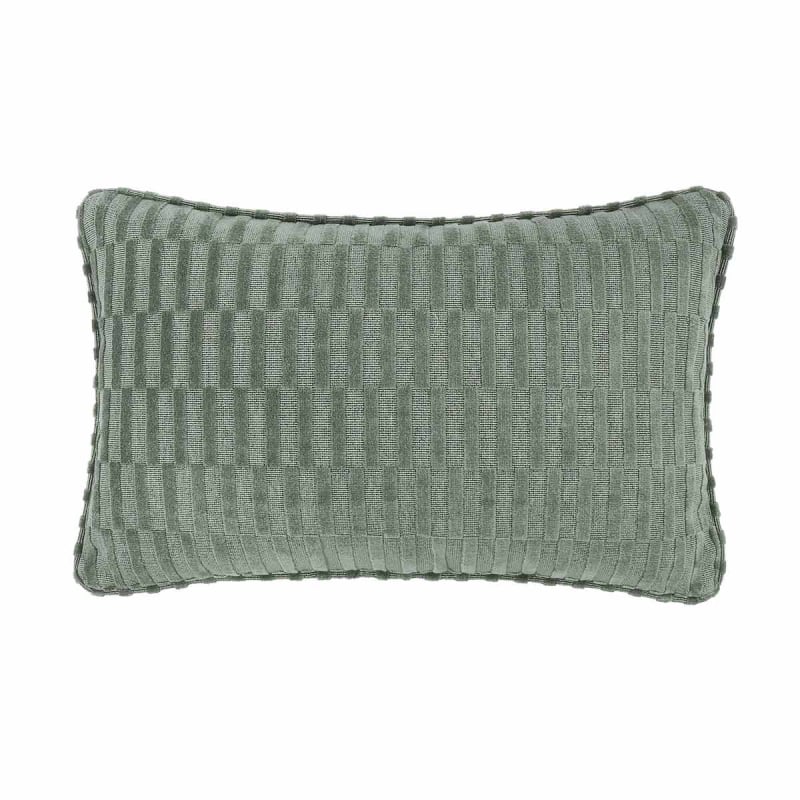 The Cartagena cushion from Zinc features a surface enlivened by a geometric pattern sculpted in double velvet. The checks are created by the contrast between cut and uncut sections, resulting in a matte texture with a dry feel. This weave combines cotton and linen in a dense structure. The whole piece exudes a strikingly understated tactile quality.