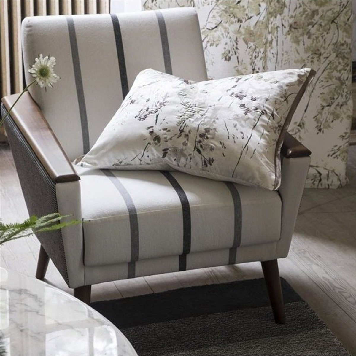 Designers Guild propose une rayure fine sur fond naturel. Les coloris de Brera Nastro en font un tissu contemporain et élégant. Son tombé lourd révèle la noblesse du lin. Résistant et facile d'entretien, ce tissu Brera rejoint la gamme très pragmatique des tissus Brera.