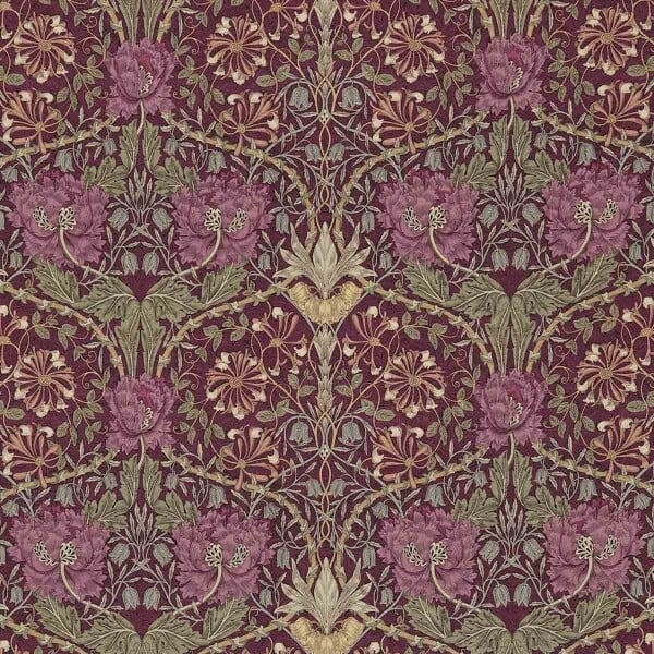 Honeysuckle & Tulip reproduces a work of Morris in 1876. Adapted by Morris & Co in rich colour declinations, it features a stylized flower arrangement where intertwined foliage is repeated over and over again to create a lattice. Honeysuckle and tulips come to complete the design.