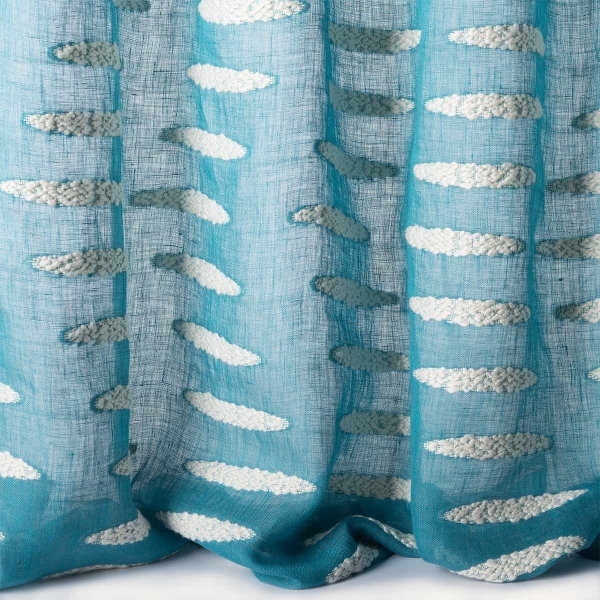 Made of linen and cotton, the Lipari veil is characterized by its finesse and lightness. On its almost transparent armor are meticulously embroidered lines. The result is an embossed texture combined with a pleasantly smooth surface. This double width fabric is edited by Nobilis.