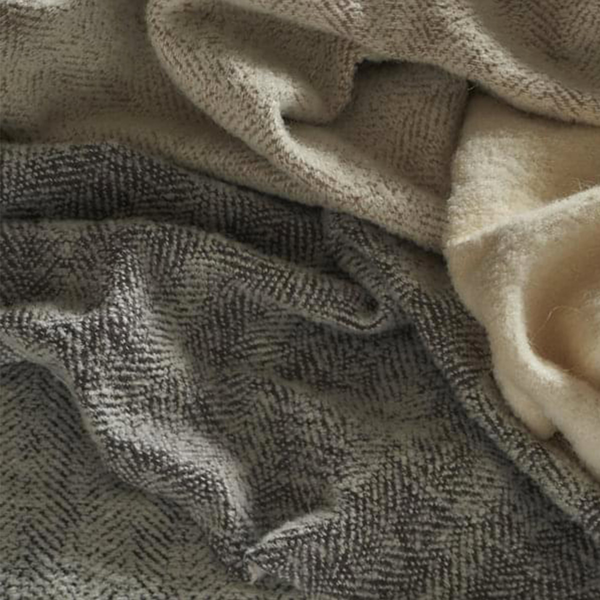 Designed with a blend of cotton and wool, the Taiga fabric has a fluffy texture. Both resistant and flexible, this textile by Antoine d'Albiousse has a magnificent fall. Its motif is made up of discreet chevrons.