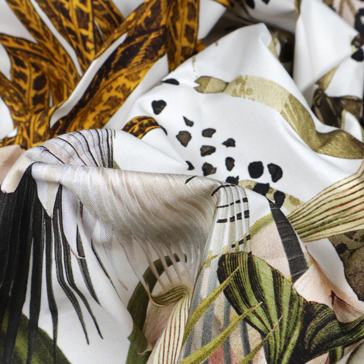 The Bird of Bengal fabric captivates with its pattern illustrating palm leaves and vibrant flowers. In the quintessence of the Christian Lacroix style, this vegetal design is imagined with extraordinary details. It is printed on pure cotton with a soft texture and pleasant to the touch.