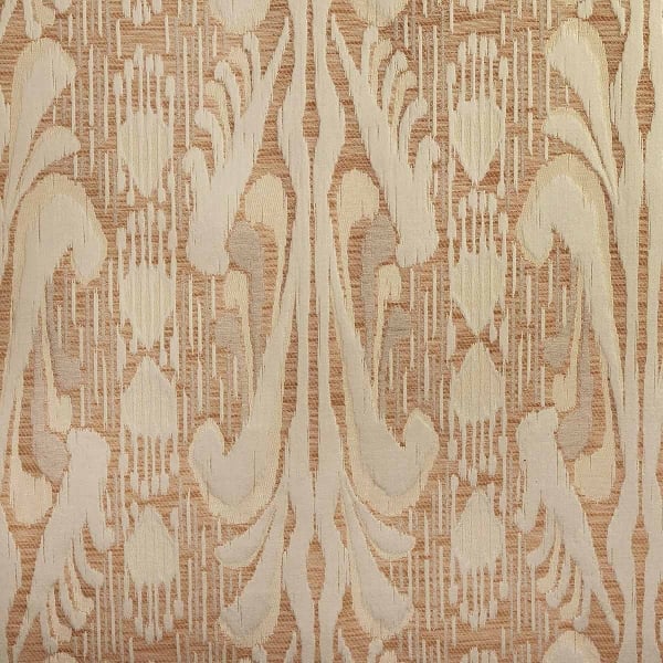 Sculpture jacquard offers a textured ikat-inspired design in soft, neutral shades. The pattern features vertical and striated curvilinear figures, evoking floral illustrations. This cotton and linen blend fabric is durable and has a beautiful fall. This masterpiece of the Résonance collection edited by Lelièvre brings a touch of romance and elegance to interiors.