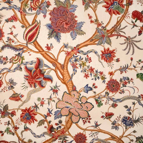 Indian based on 17th century motifs, the Berny canvas produced by Charles Burger is made from a cotton fiber. Its floral pattern elegantly and precisely draws an exotic flora composed of sinuous branches and extraordinary flowers.