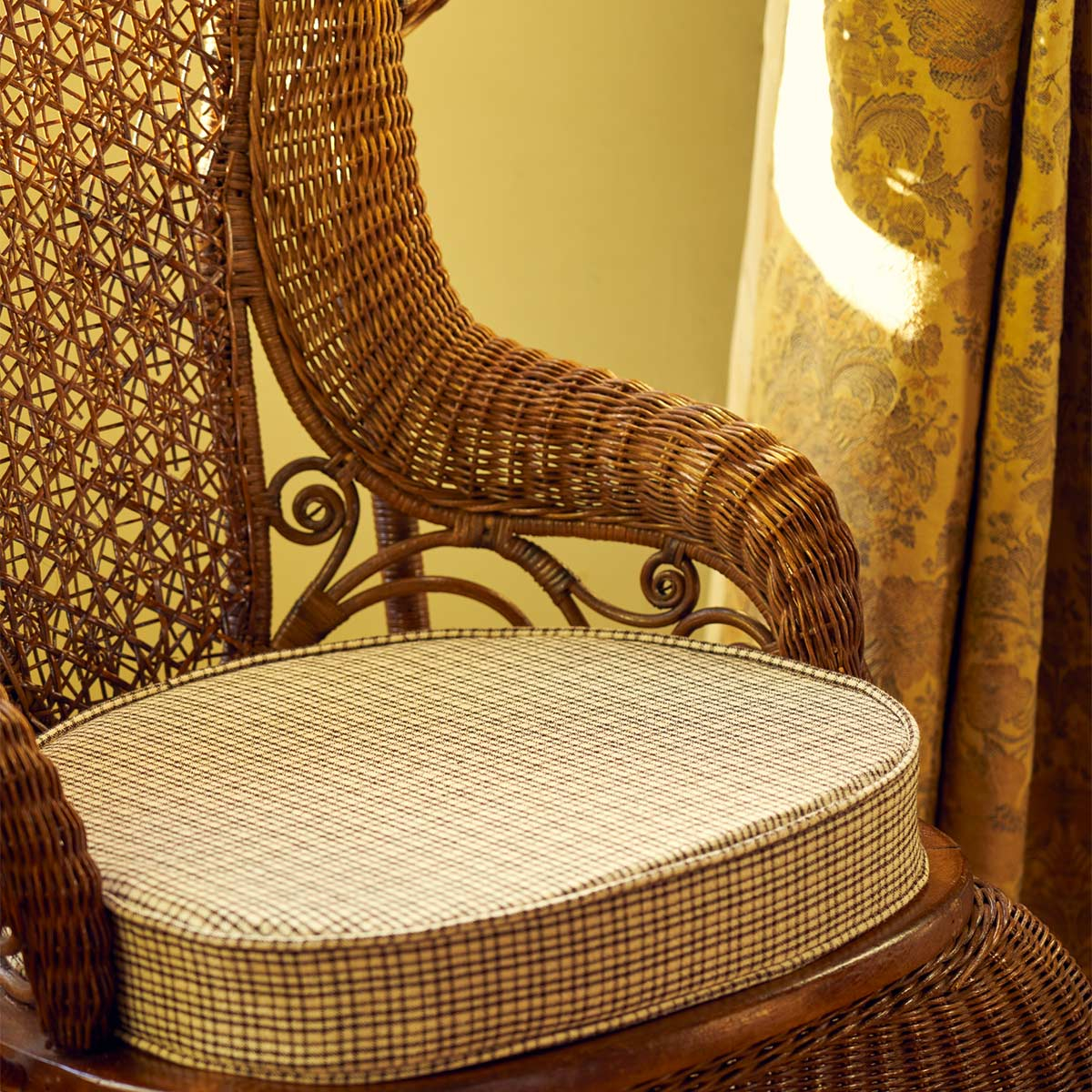 Cambremer, a fabric by Quenin, offers a contemporary reinterpretation of the classic Vichy pattern. Its small, faded checks with a vintage effect evoke a nostalgic country style. Made entirely from natural fibres, it has a soft texture and a supple fall, a light caress evoking the softness of a spring breeze. Warm and inviting, Cambremer is available in a wide range of soft shades.