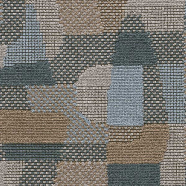 Zimmer & Rohde draws inspiration from patchwork in the design of Puzzle, a jacquard velvet woven on a traditional loom. It features a ribbed surface where four colors interplay to create the appearance of a textile mosaic. The surface presents both solid and speckled areas, resembling an assembly of different fabric pieces. The chromatic result forms organic shapes, awakening spaces with a kaleidoscopic effect.