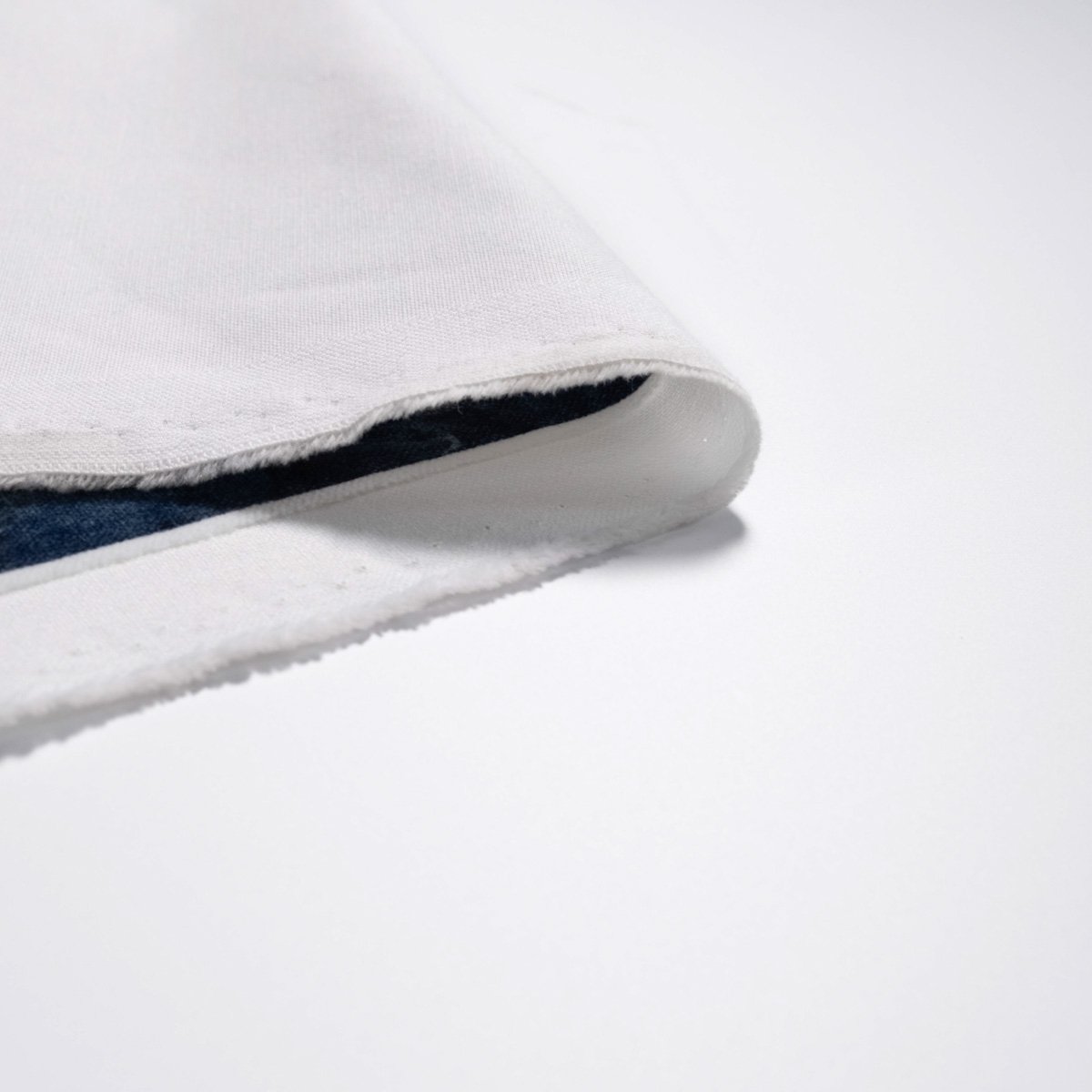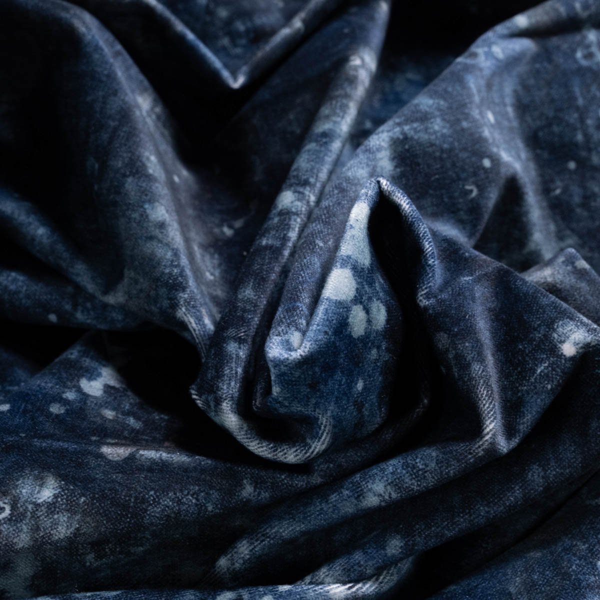 Dropcloth velvet is a fabric with an abstract pattern that evokes erased pictorial traces. Like ancient strata, it reveals a superposition of marbled mineral textures. Made of cotton by Ralph Lauren, this creation looks like a painted work. It amplifies the visual depth by the richness of its surface.