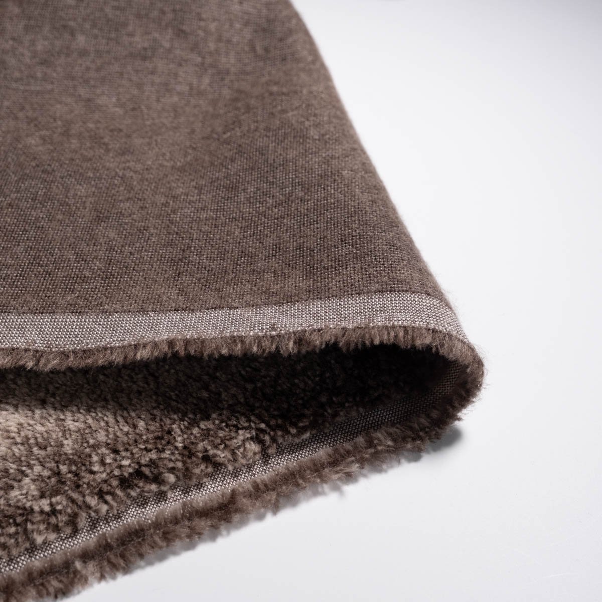 Après Ski Velvet is a fabric that suggests the dense appearance of a worked knit. The plain textured pattern reveals discreet nuances and an irregular relief that is reminiscent of raw material. Mainly composed of wool, it has a surface that is both structured and soft. Signed by Designers Guild, this fabric is part of a sober and minimalist aesthetic.