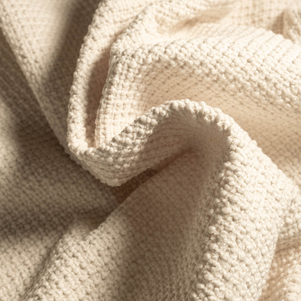 Arlberg Weave is a fabric whose textured plain pattern plays on the nuance between thick and thin threads. Its regular weave composes a looped relief, animated by discreet horizontal lines. The appearance of the design suggests a rhythmic linear structure, the result of artisanal work. This model by Designers Guild explores the tensions between density and lightness of the fibers.