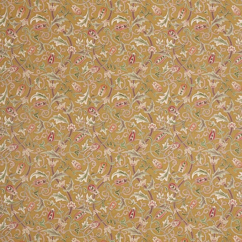 Scrolling Tulip présente un entrelacs dense de tiges courbes, de tulipes inclinées et d’oiseaux stylisés. Ce tissu signé Morris and Co révèle un motif floral structuré autour de volutes régulières, où chaque élément trouve sa place dans un rythme décoratif maîtrisé. Les feuilles élancées dessinent des courbes souples entre les rameaux. L’ensemble forme une composition dense, structurée avec rigueur dans l’esprit de William Morris.