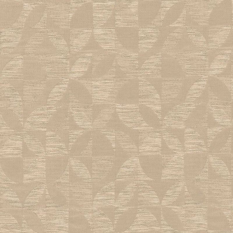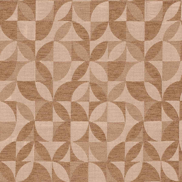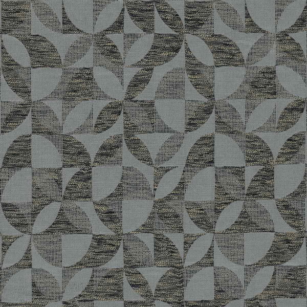 Modulation is a geometric-patterned upholstery fabric by Casamance. Semicircular shapes repeat and interlock on its weft to create a moving design. Each element fits into a square, forming a stylized rosette. The lines are sometimes full, sometimes striated, accentuating the visual rhythm and the play of material.