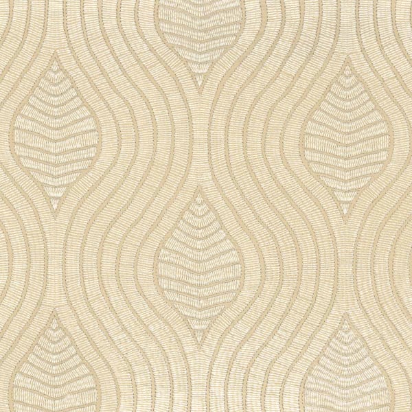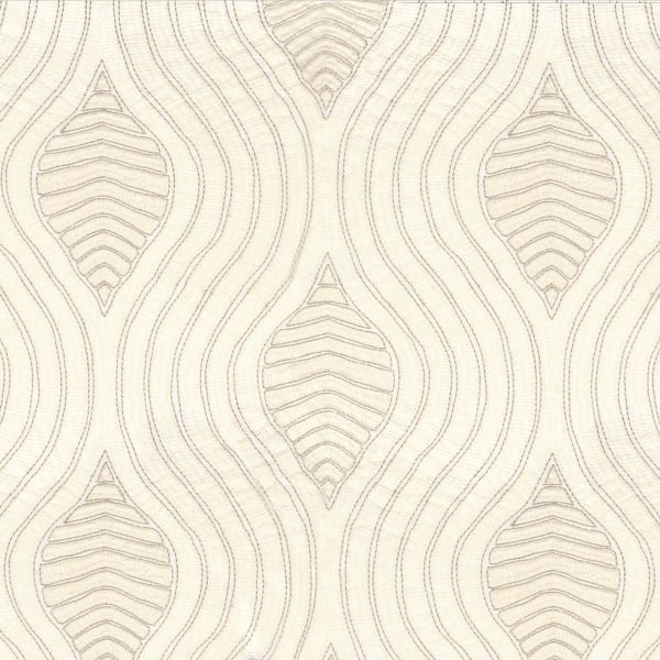 An ornamental geometric pattern expresses itself with a soft and assertive presence on the Volute de Casamance fabric. Undulating lines unfold in regular arabesques and draw shapes of suspended drops. These embossed lines come to life thanks to an embroidery that stands out on an immaculate cotton canvas. This textile embodies a balance of rigor and flexibility.