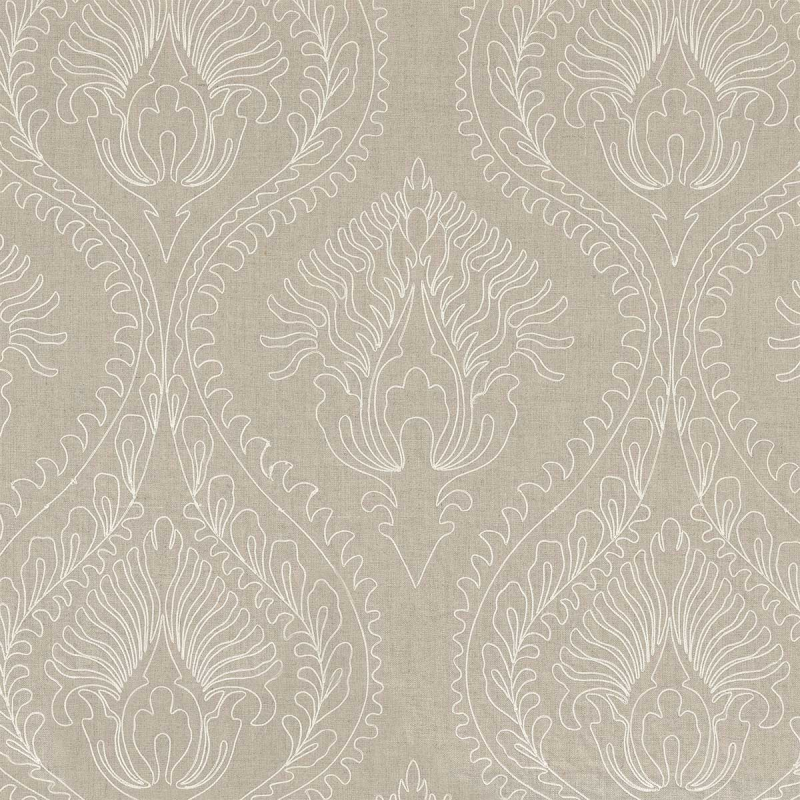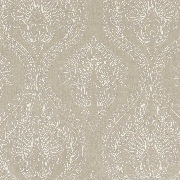 The Épure fabric reveals a stylized damask pattern that stands out on a linen base. Inspired by a classic ornamental language, symmetrical shapes emerge in a delicate pattern. Embroidery accentuates the graphic structure of the design while emphasizing its textile dimension. This Casamance textile plays on the contrast between raw material and the sophistication of the pattern.