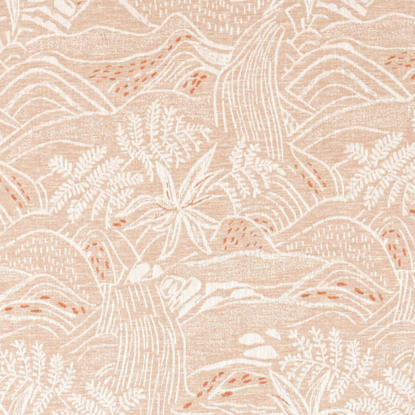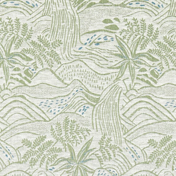 The Falling Foss Weave fabric unfolds a graphic decor where gentle mountains, stylized foliage and waterfalls intertwine in a fluid scene. Its embossed surface is distinguished by its structured figurative pattern obtained by jacquard weaving. The lines engraved in the weft are punctuated by contrasting textures. Scion translates a poetic vision of the natural world, between abstraction and suggestion.