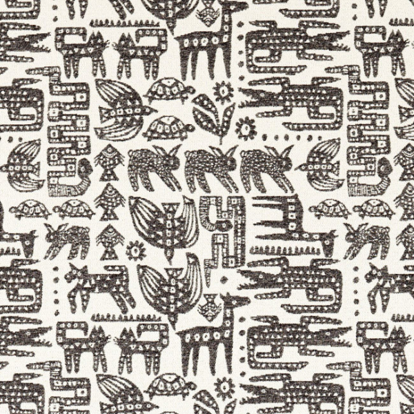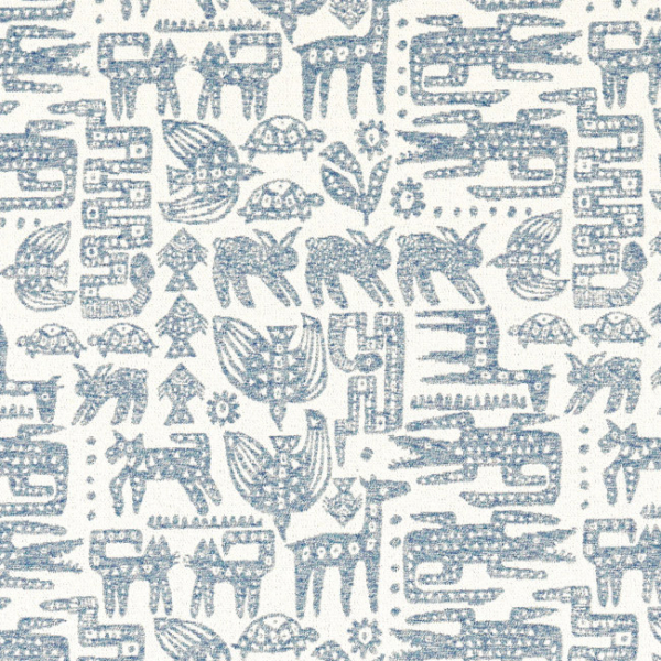 The Twycross fabric features a dense and rhythmic animal pattern of stylized creatures. Deer, birds, turtles, and rabbits spread out in an imaginary universe inspired by a graphic zoo. Each hand-painted shape expresses an ancient and folkloric decorative language, with woven textures. Arranged with meticulous care, the composition showcases a balance between spontaneous movement and controlled repetition.