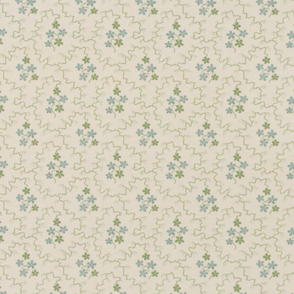The Posy fabric features a floral pattern with clean lines, designed by GP & J Baker. Small flowers emerge from a mesh of undulating lines and form an airy design. This cotton canvas reveals a regular decor, where each figure floats lightly on the surface. It is distinguished by the softness of its curves and the balance of its composition.