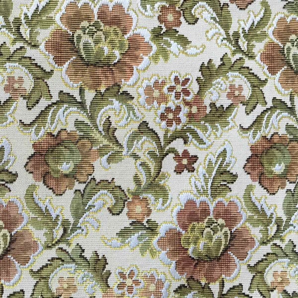 Mougins, an upholstery fabric by Antoine d'Albiousse, features a richly composed classic floral pattern. Large corollas bloom among finely drawn foliage, revealing the precision of a jacquard weave. This textile has a full, supple and lively texture, imprinted with the splendor of ancient tapestries. Each sculpted line accentuates the decorative heritage of a stylized garden.