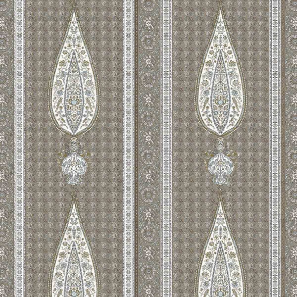 The Indira fabric reveals an ethnic pattern, punctuated by intertwined drops and friezes, inspired by classic oriental designs. Signed Gastón y Daniela, this textile has a strong and structured visual presence. The vertical lines accentuate the effect of movement and depth in the composition. Every detail bears witness to a precise sense of ornamentation.