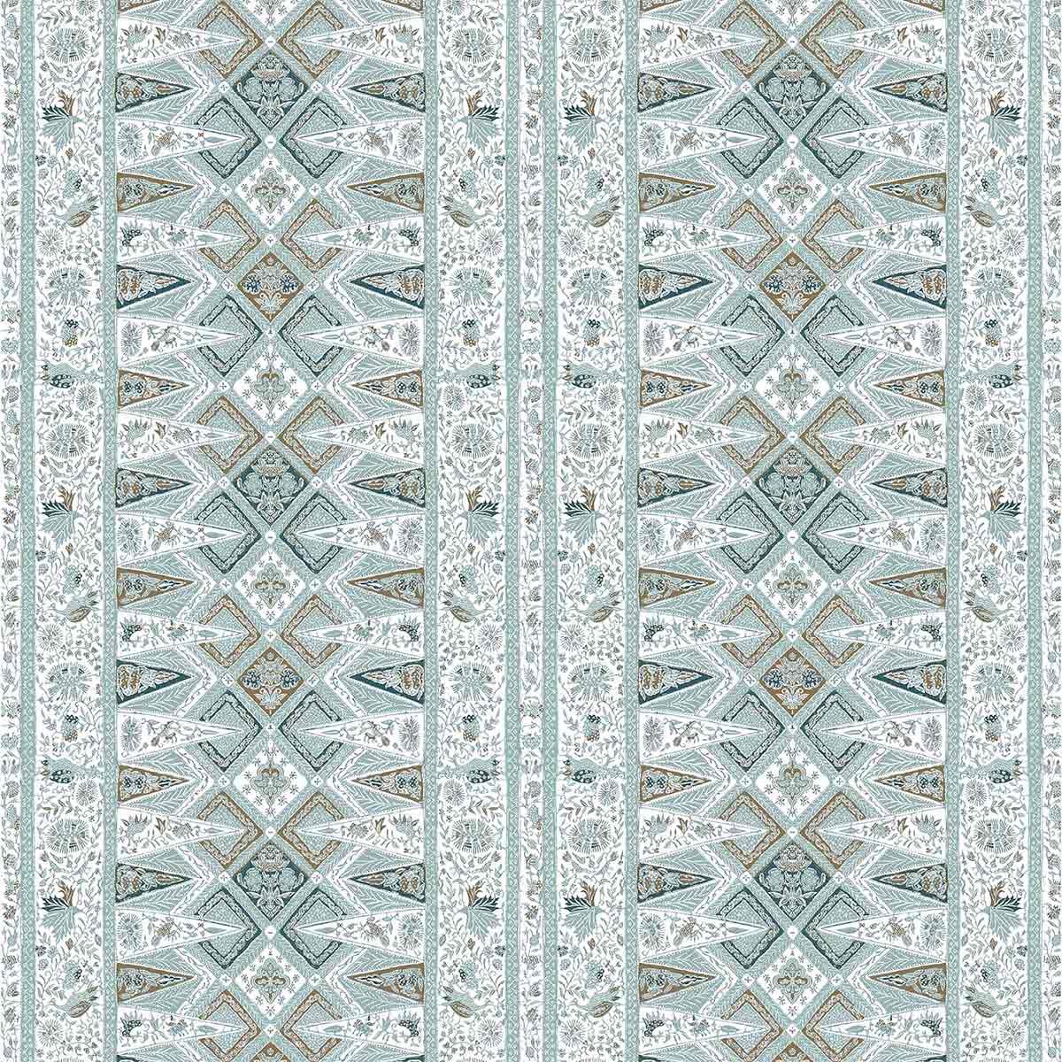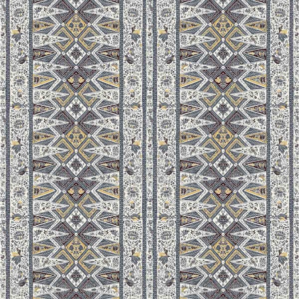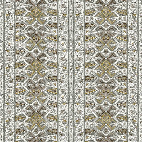 The Nirvana fabric reveals a rhythmic structure of ethnic bands punctuated with floral, plant and stylized bird details. Created by Gastón y Daniela, this textile combines graphic refinement and decorative richness. The design alternates geometric rigor and ornamental flights. Each element composes a vibrant fresco, both precise and dreamlike.