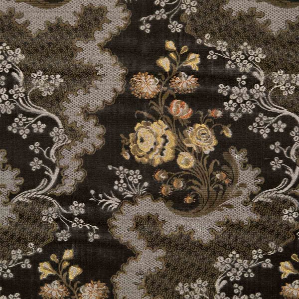 Quenin presents the Mélodie velvet, where a rich floral motif blossoms. Large stylized flowers, surrounded by undulating stems and dense foliage, emerge from a background of deep arabesques. The relief of the velvet underlines each curve with intensity and gives a fluffy feel. The whole evokes a textile score with classic and opulent accents.
