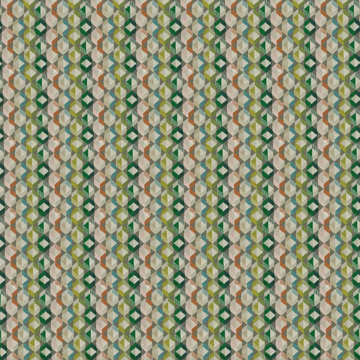 Osborne and Little unveils Freya, a velvet with a vibrant geometric pattern. Diamonds with irregular contours interlock with precision and blend chiseled textures and velvety flatness. The material captures the light and reveals the tactile depth of the weave. Each shade dialogues with the next in a composition of mastered harmony.