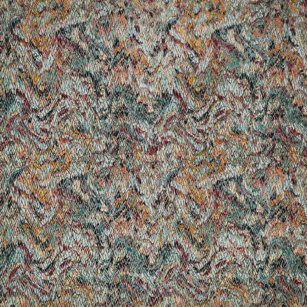Osborne and Little présente Eladoria, un tissu dense en sensations. Le velours coupé et bouclé compose une surface à la texture vibrante, vivante sous la main. Les chevrons fragmentés dessinent un rythme heurté qui évoque des éclats de flammes. Le motif géométrique semble surgir de la matière, dans une tension entre ordre et effraction.