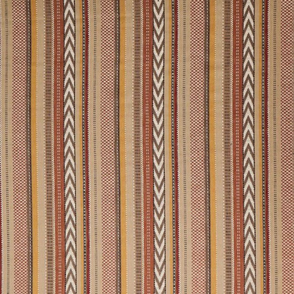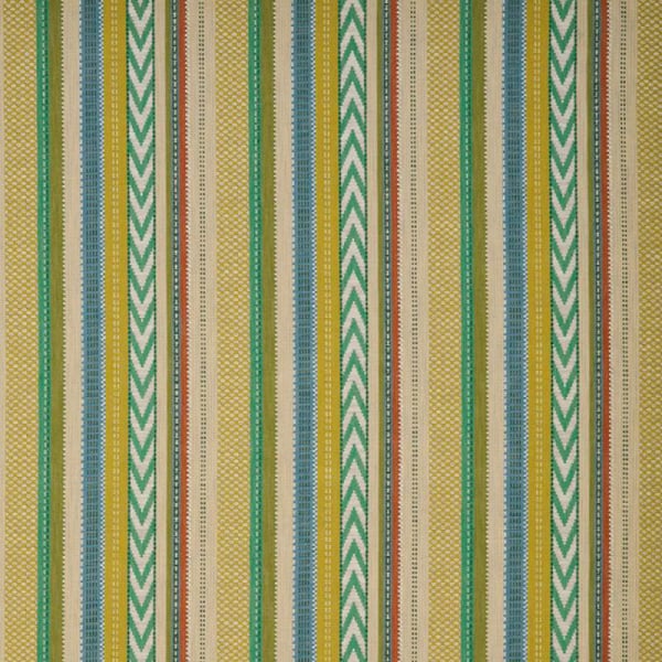 Osborne and Little signe avec Livenza un tissu à rayures où se mêlent rigueur géométrique et fantaisie graphique. Le motif alterne des chevrons, des lignes ponctuées et des traits fins qui évoquent des points de couture stylisés. Chaque bande semble animée d’un rythme propre, comme tissée d’une énergie discrète. Majoritairement composé de coton, ce textile présente une texture souple.