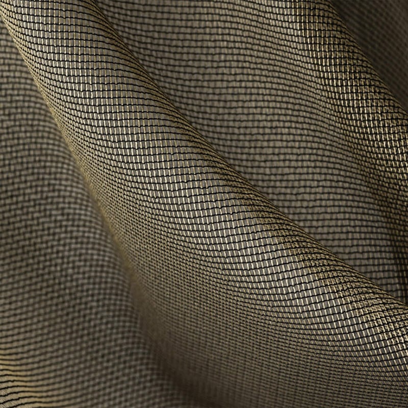 Métaphores presents Juno, a fabric with a semi-plain pattern whose surface captures light with subtle metallic reflections. The fabric brings the surface to life with a subtle shimmer, traversed by waves of light that glide and echo in silence. Its design evokes the world of aeronautics and the precision of solar panels. Designed in an extra-wide format, this sheer panel unfolds in a continuous expanse, allowing light to flow through with fluidity.