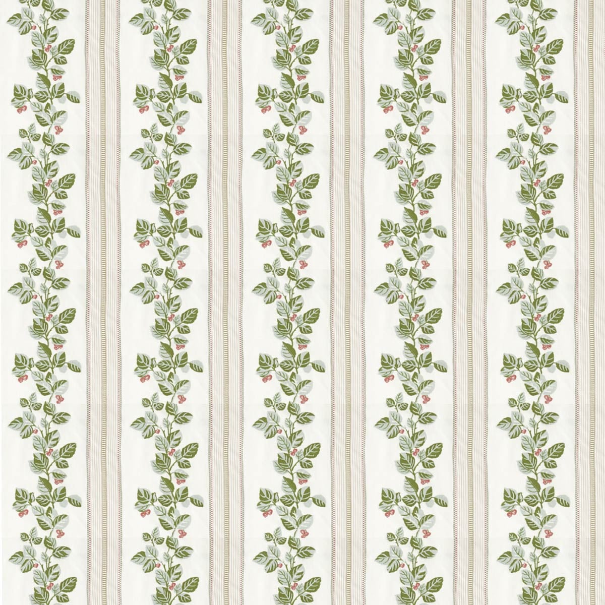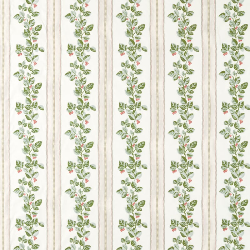 A botanical stripe with a subtle charm runs across Sanderson’s Cobnut Stripe fabric. The botanical motif is inspired by the Brockhampton estate, which was once teeming with wild hazel trees. Embroidered branches, rendered with tactile density, appear to be etched into the cotton, combining vertical precision with ornamental naturalism. To the touch, the fabric reveals meticulous craftsmanship, a blend of thread and foliage.