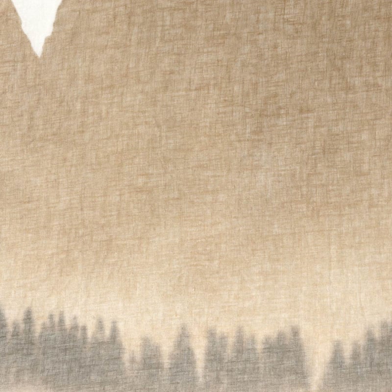 Mirage de Casamance is a fabric featuring a landscape pattern that depicts a forest with blurred outlines, as if suspended in a silent mist. The design suggests a diffuse line of trees, whose silhouettes blend into the ethereal weave. Its generous width enhances the panoramic effect of a horizon that stretches out calmly. Made entirely of linen, it reveals a vibrant texture, rooted in a tangible presence.
