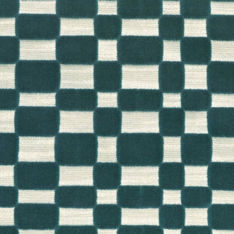 A contemporary geometric pattern covers the Modulor fabric designed by Casamance. The design features a grid of squares and rectangles with rounded corners that fit together in a regular pattern. Inspired by Le Corbusier’s modular architecture, it establishes a precise, structured rhythm. The pile velvet, partly made of cotton, forms the surface and offers a fluffy feel.