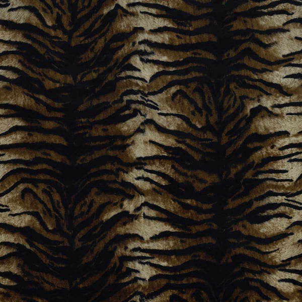 Caspian Velvet is a fabric designed by House of Hackney, featuring an animal print inspired by the tiger’s coat. The irregular stripes unfold in sinuous lines, alternating between density and lightness. Made primarily from cotton, it features a loose, natural fiber that gives the fabric structure and depth. Its silky appearance and fluffy hand create an enveloping tactile sensation.