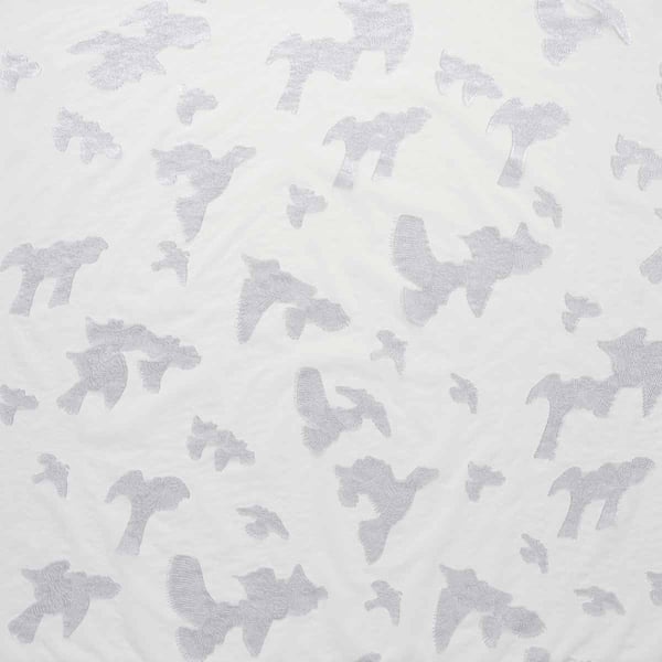 Sahco’s Chara fabric features a geometric pattern in which stylized bird silhouettes are arranged within a regular grid. The design creates a structured, airy visual rhythm through angular shapes and widely spread wings. The precise outline of each figure reveals a subtle play on texture. Partially made from recycled fibers, this textile reflects a thoughtful approach to materials.