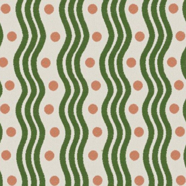 Outremer is a fabric featuring a geometric pattern structured by a series of sinuous lines that follow one another in a regular sequence. Dots punctuate the composition and create a subtle visual counterpoint. The surface vibrates with a continuous movement and exudes a fluid dynamism that brings the weave to life. This Étamine textile evokes the curved, enveloping spirit of 1950s furniture.