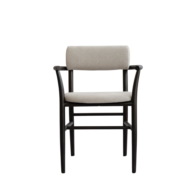 With its sculpted lines, the Nama Dining Chair Armrest Linen seat embodies a refined aesthetic. Its seat and back are adorned with natural linen, whose fine texture provides visual comfort. The geometric structure in solid oak creates a subtle contrast with the softness of the textile. This chair reflects the formal and timeless language of 101 Copenhagen.