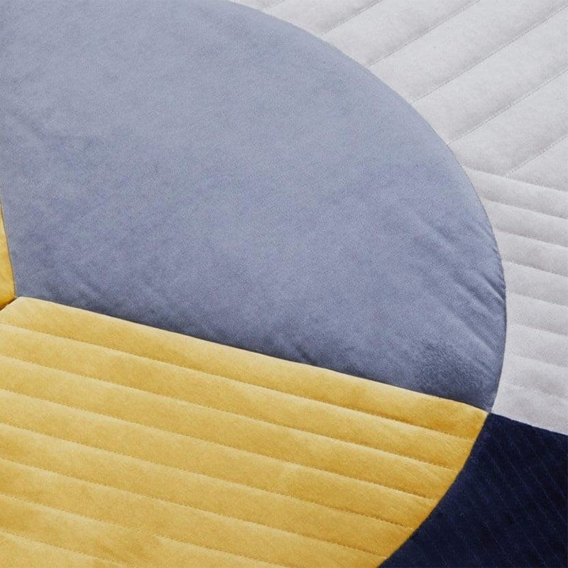 This contemporary and graphic Nodus rug created by Hanna Ernsting and Sarah Böttger is made of felt. Divided into different colored plots, the colors are both vivid and soft. They have seams drawing a geometric pattern on each piece. Mokai is thick and fluffy, it invites you to sit comfortably on its surface. Its overall shape recalls the appearance of a sumptuous Egyptian golden jewel representing the sacred beetle. This rug brings originality and a playful note to spaces.