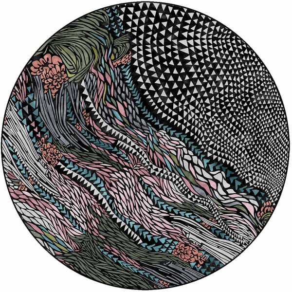 Created by designer Sacha Walckhoff, Wild Vibrations Round rug interprets with numerous tribal details the effect of light on the surface of a mysterious lake. Luminous triangles combine with plant shapes to give an illusion of movement and aquatic whirlwind to this generously sized rug.